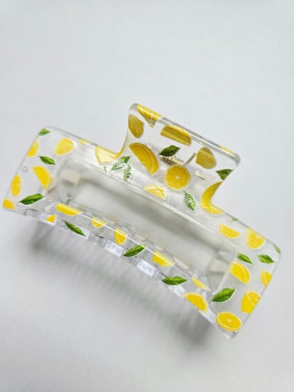Dodaj odrobinę elegancji i subtelności do swoich stylizacji dzięki naszej spince do włosów w klasycznym prostokątnym fasonie. Przeźroczysta, ozdobiona delikatnym wzorem w cytrynki, stanowi idealne uzupełnienie zarówno codziennych, jak i bardziej eleganckich kreacji. Funkcjonalna i stylowa, sprawdzi się na wiele okazji, podkreślając Twój wyjątkowy gust.