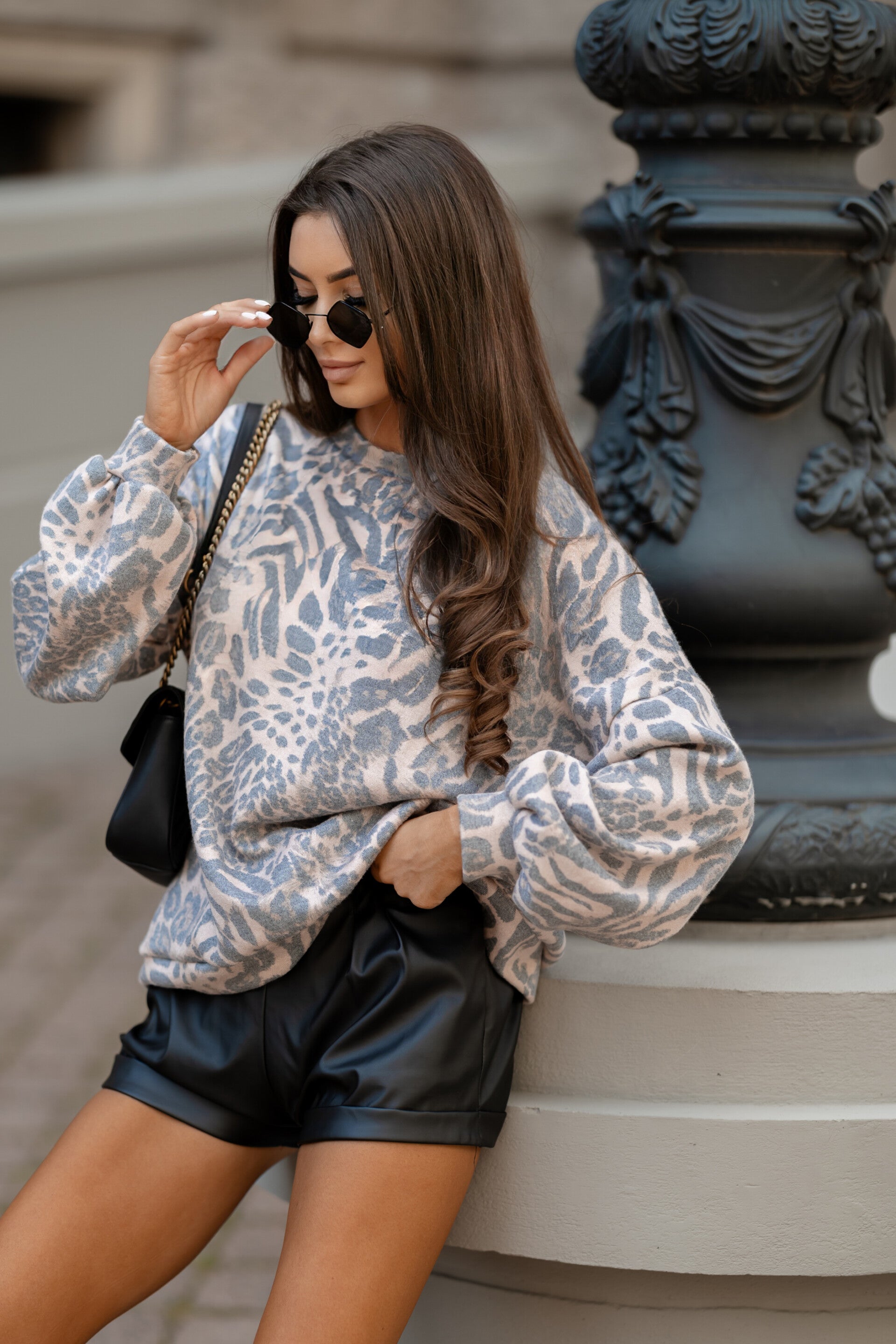 Odkryj nasz niezwykły sweterek, który łączy w sobie doskonały styl i niezwykły komfort. Wykonany z wysokiej jakości materiałów, ten sweterek w modnym wzorze panterki w kolorze latte doda charakteru każdej stylizacji.