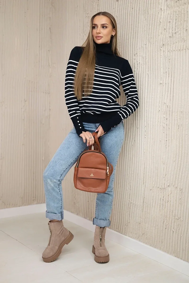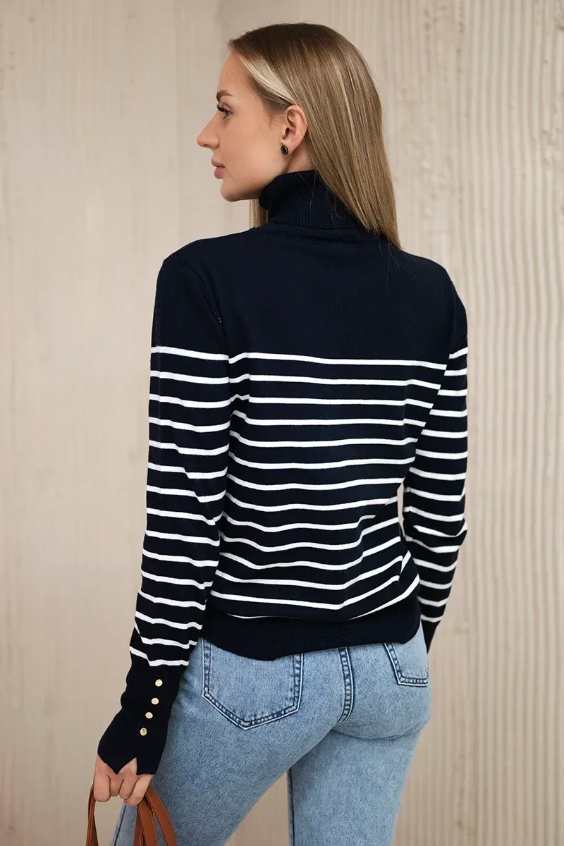 Sweter z golfem w paski granatowy