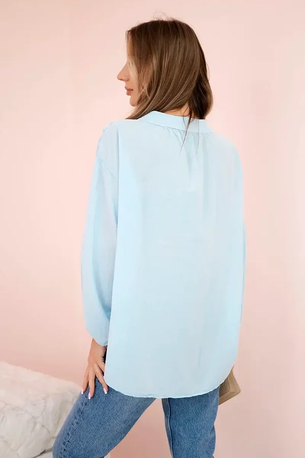 Odkryj naszą stylową bluzkę koszulową, która łączy casualowy komfort z wyjątkowym designem. Model wykonany z miękkiego, przewiewnego materiału, zapewnia wygodę na co dzień. Dekolt w serek subtelnie podkreśla sylwetkę, a haftowane serca dodają całości romantycznego charakteru. Luźniejsze, zakończone gumką rękawy nadają lookowi lekkości i swobody. Oversize'owy fason sprawia, że jest to doskonały wybór dla osób ceniących modę w relaxed style, idealny na spotkania z przyjaciółmi, weekendowe wyjazdy czy codzienne stylizacje. Postaw na wygodę i wyjątkowy wygląd z naszą koszulą!