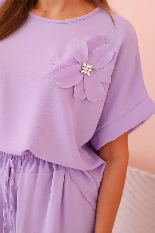 Odkryj nasz nowy komplet wiskozowy – idealne połączenie komfortu i najnowszych trendów! Spodnie w najbardziej modnym fasonie z szerokimi nogawkami, które dodadzą Twojej stylizacji wyjątkowego charakteru. Gumka w pasie zapewnia doskonałe dopasowanie i wygodę na cały dzień. Do tego elegancka bluzka w kroju oversize, ozdobiona efektownym, kwiatem z cyrkoniami – wyjątkowy akcent, który przyciąga uwagę. Całość w pięknym, liliowym kolorze, podkreślającym kobiecość i subtelność. Idealny wybór na zarówno codzienne, jak i bardziej wyjątkowe okazje. Zamów już dziś i podkreśl swoją unikalną stylizację!