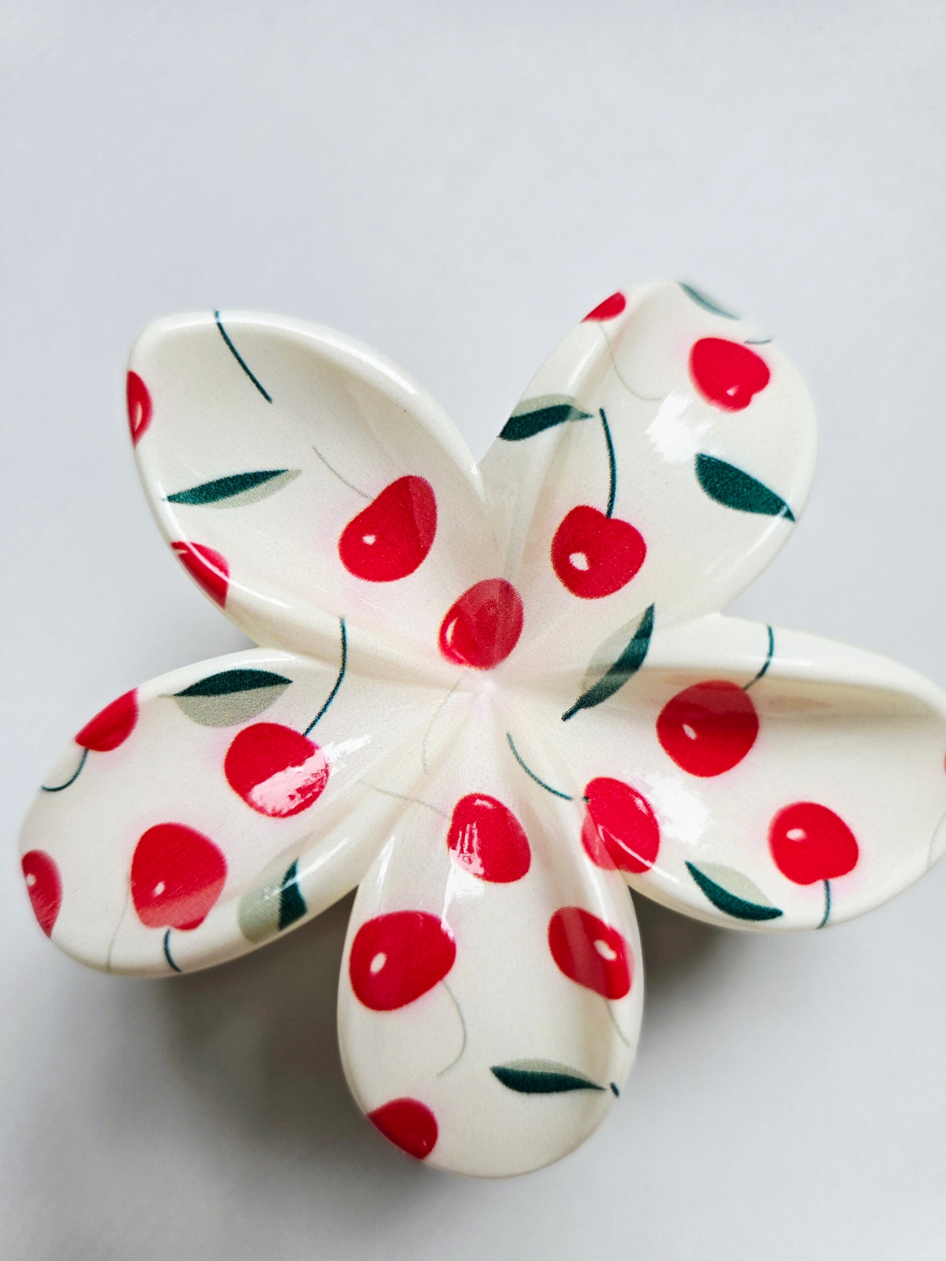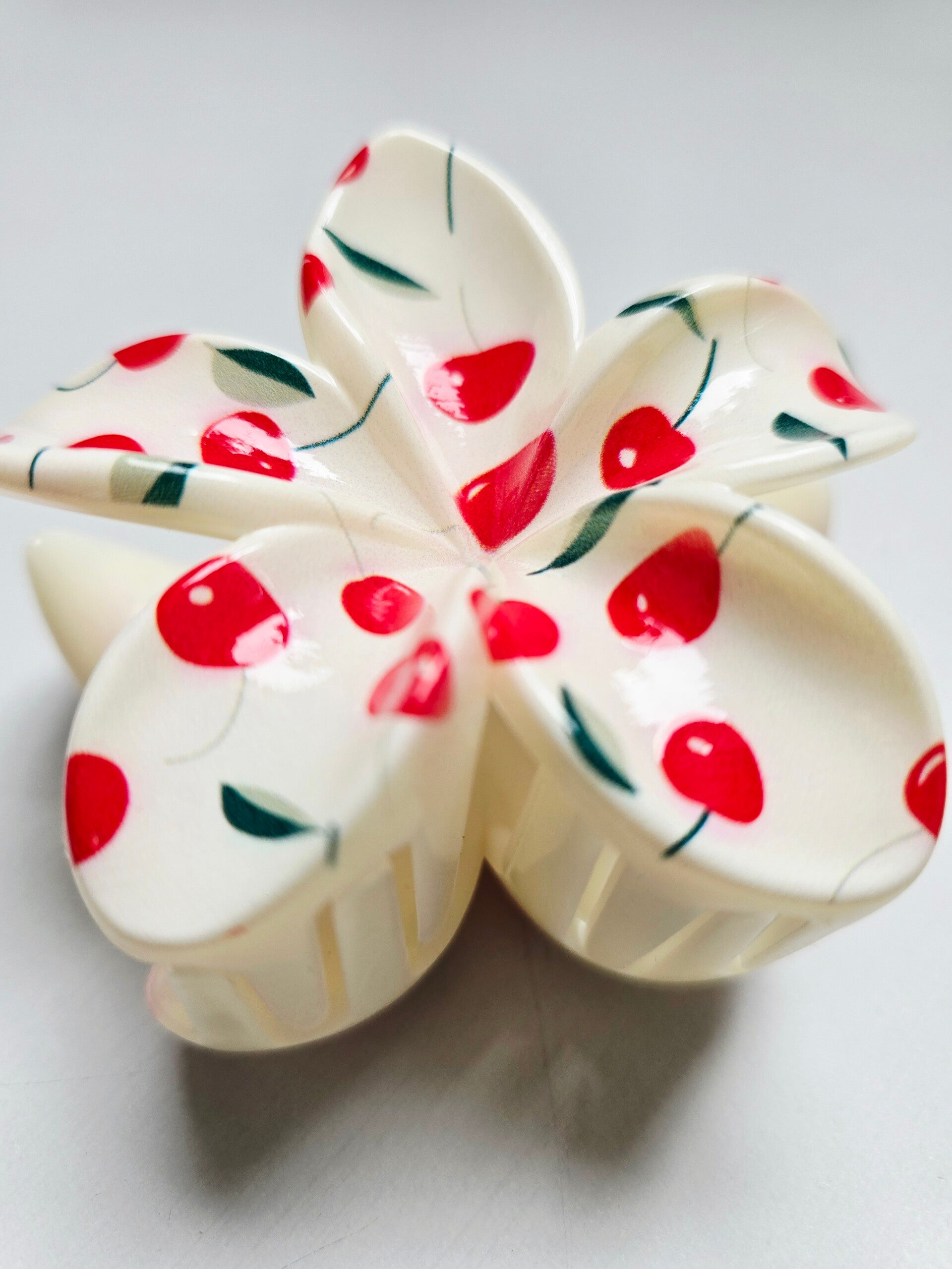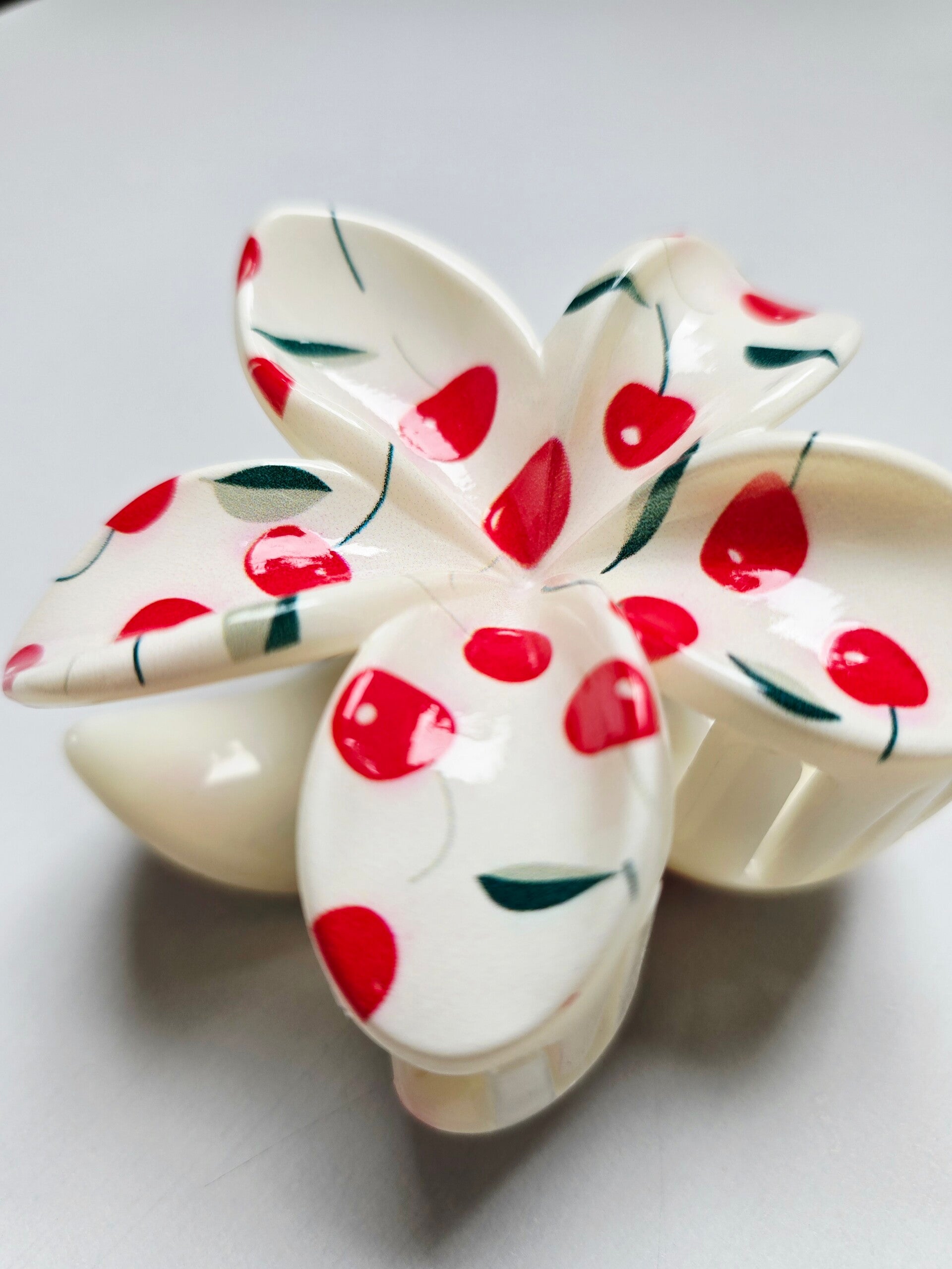 Klamra do włosów w kształcie kwiatu z motywem wisienek – elegancki dodatek na każdą okazję
