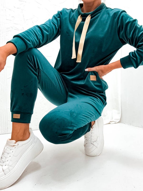 Komplet sprawdzi się zarówno podczas relaksu w domu, jak i na spacerze czy spotkaniu z przyjaciółmi. Postaw na styl, komfort i jakość – wybierz nasz welurowy dres w pięknej butelkowej zieleni!
