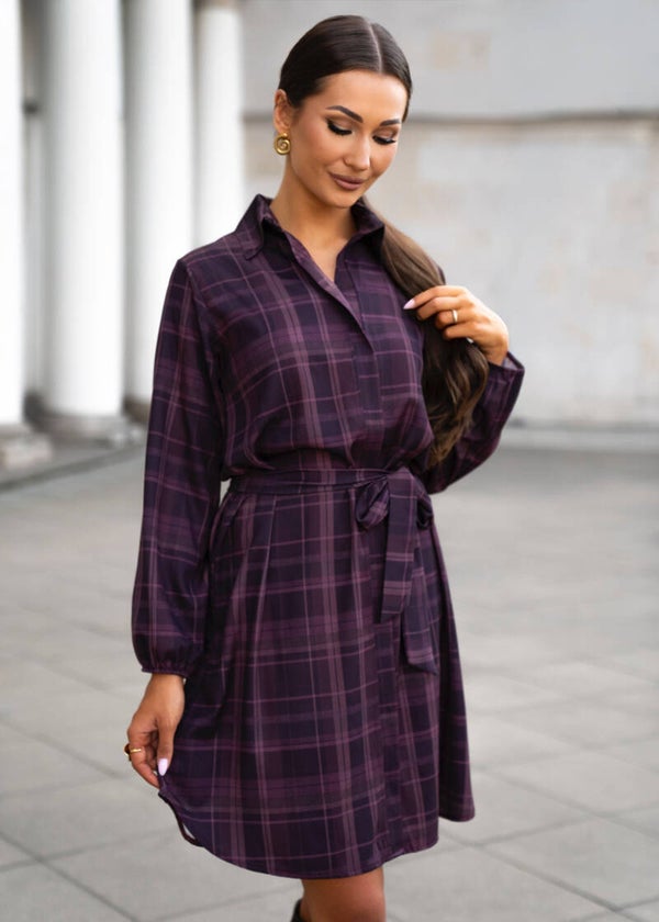 Odkryj naszą elegancką sukienkę koszulową w najmodniejszym bordowym odcieniu, który doda Ci klasy i wyrafinowania. Klasyczny wzór kraty nadaje jej wyjątkowego charakteru, idealnego na co dzień i specjalne okazje. Sukienka zakładana przez głowę. Dodatkowo, materiałowy pasek pięknie podkreśla talię, podkreślając kobiecą sylwetkę i zapewniając jeszcze większy komfort noszenia. To uniwersalna i modna propozycja, która sprawdzi się w każdej garderobie!