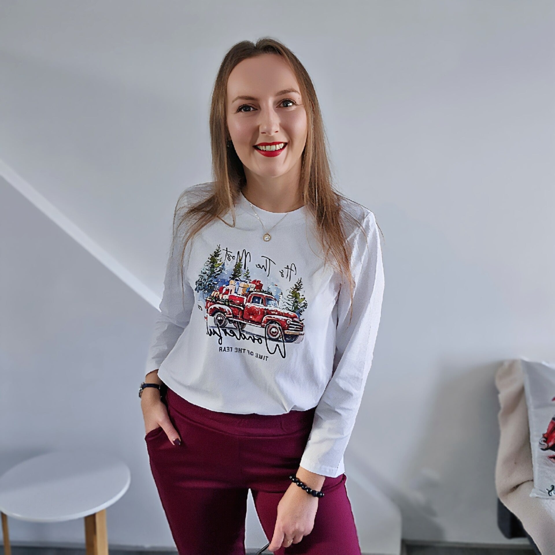 Odkryj naszą wyjątkową bawełnianą bluzkę ze świątecznym nadrukiem – idealny wybór na sezon świąteczny! Wykonana z miękkiej, wysokiej jakości bawełny, zapewnia komfort i trwałość. Klasyczny biały kolor podkreśla świąteczny nadruk, dodając uroku każdemu strojowi. Długi rękaw sprawia, że jest to doskonała opcja na chłodniejsze dni, jednocześnie wprowadzając świąteczny nastrój do Twojej garderoby. Zajrzyj do naszego butiku online i dodaj do swojej kolekcji wyjątkowy element na święta!