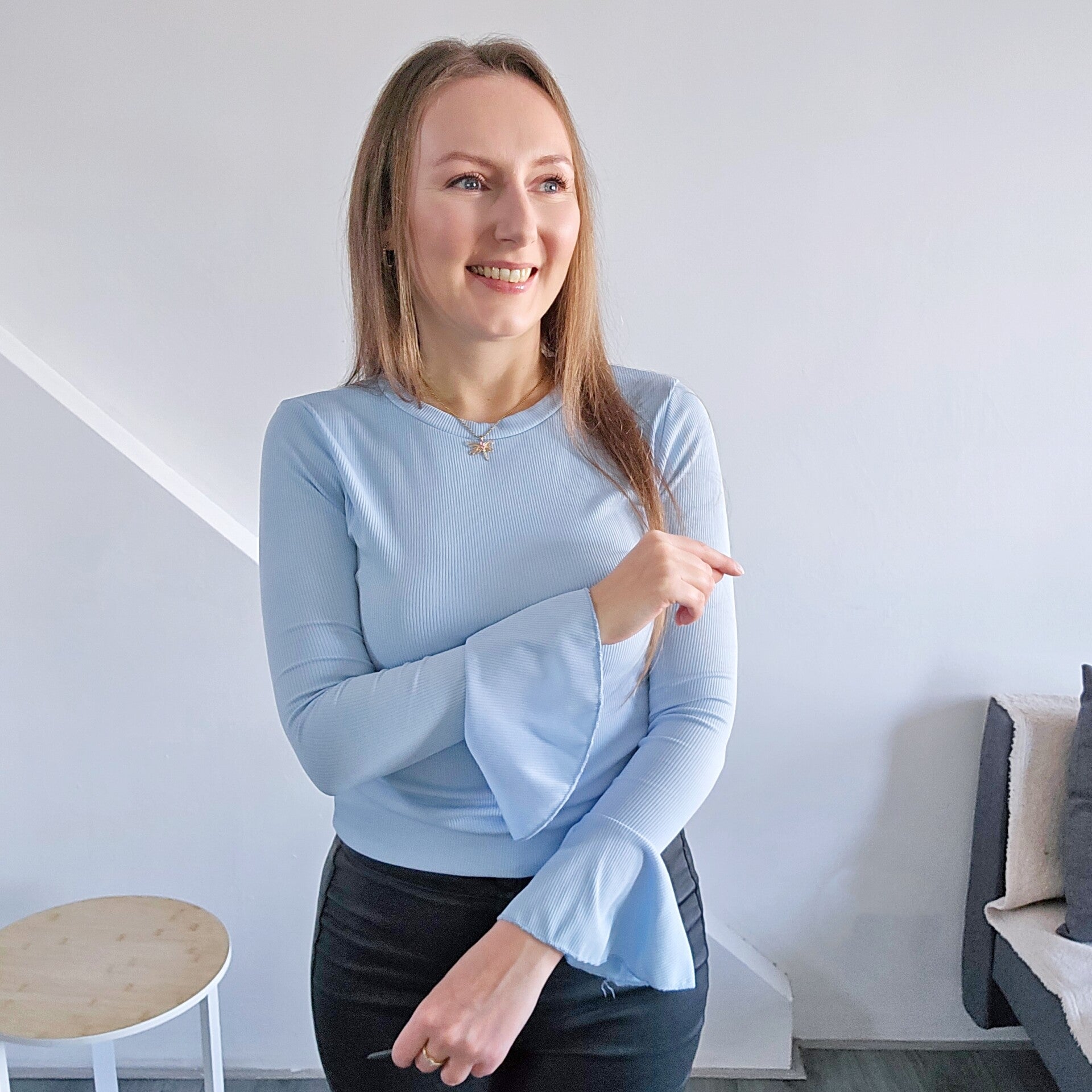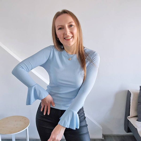Odkryj naszą elegancką bluzkę z delikatnego, prążkowanego materiału w pięknym odcieniu błękitnym. Gładki design połączony z wyjątkowymi, rozszerzanymi rękawami nadaje jej subtelnego uroku i elegancji. To uniwersalny element, który doskonale sprawdzi się w wielu stylizacjach – zarówno na co dzień, jak i na specjalne okazje. Dodaj swojej garderobie odrobinę świeżości i kobiecego wdzięku dzięki tej wyjątkowej bluzce!